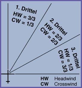 1. Drittel (z.B. 110°/15kts) - Headwind 3/3 (= 15 kts) - Crosswind 1/3 (= 5 kts) 2. Drittel (z.B. 140°/15kts) - Headwind 2/3 (= 10 kts) - Crosswind 2/3 (= 10 kts) 3. Drittel (z.B. 160°/15kts) - Headwind 1/3 (= 5 kts) - Crosswind 3/3 (= 15 kts) ![]() Mit dem Wissen über die Windverhältnisse wird jede Landung einfacher. Da wäre nur noch die Sache mit dem Fuss - mehr darüber beim nächsten mal. |